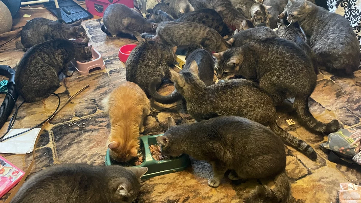 Po prostu, 30 kotów przeraźliwie głodnych, odwodnionych, bo to widać było po skórze. Woda była zakręcona w mieszkaniu, więc one nie miały dostępu do niczego, dwie kuwety na 30 kotów. Pierwszy raz mamy do czynienia z taką sytuacją, że ktoś w maleńkim, niespełna 30-metrowym mieszkaniu przetrzymuje taką ilość kotów, kompletnie nieprzystosowanym do tego