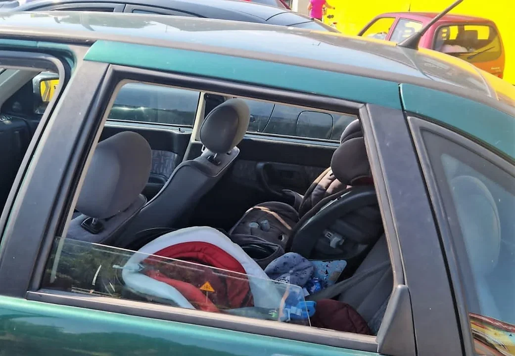 Drzwi samochodu były zamknięte, w fotelikach na tylnym siedzeniu auta znajdowało się dwoje małych dzieci, które mimo delikatnie uchylonej szyby były bardzo spocone i wyglądały na wycieńczone.