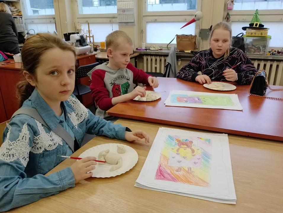 Podczas ferii młodzież wykonywała prace plastyczne różnymi technikami. Poprzez malowanie farbami plakatowymi, akwarelami, kredkami woskowymi, czy szkicowanie. Uczestnicy feryjnych zajęć robili również biżuterię, którą potem mogli zabrać do domów.