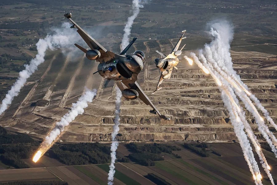Jak informują wojskowi, podczas manewrów przećwiczono wspólne planowanie, techniki lotu i taktykę bojową. Myśliwce latały w bojowym szyku czy też wystrzeliwały flary. Samoloty pojawiły się również w okolicach Bełchatowa m.in. nad kopalnią i elektrownią.