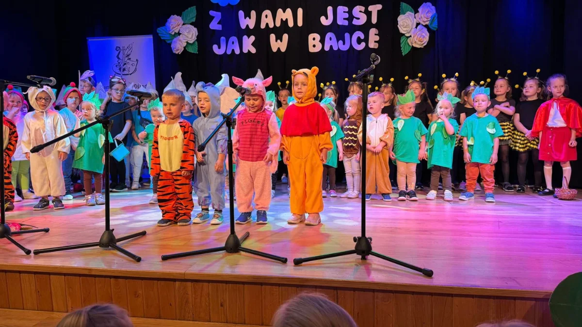 Dzieci, przebrane za postacie z bajek m.in. smerfy, krasnoludki i pszczółki, zachwyciły publiczność swoim pełnym entuzjazmu występem oraz uroczymi strojami. Maluchy zaprezentowały piękne piosenki, taneczne układy oraz wiersze dedykowane swoim kochanym rodzicom. Ich zaangażowanie i radość były widoczne na każdym kroku, sprawiając, że cała sala była oczarowana występem.