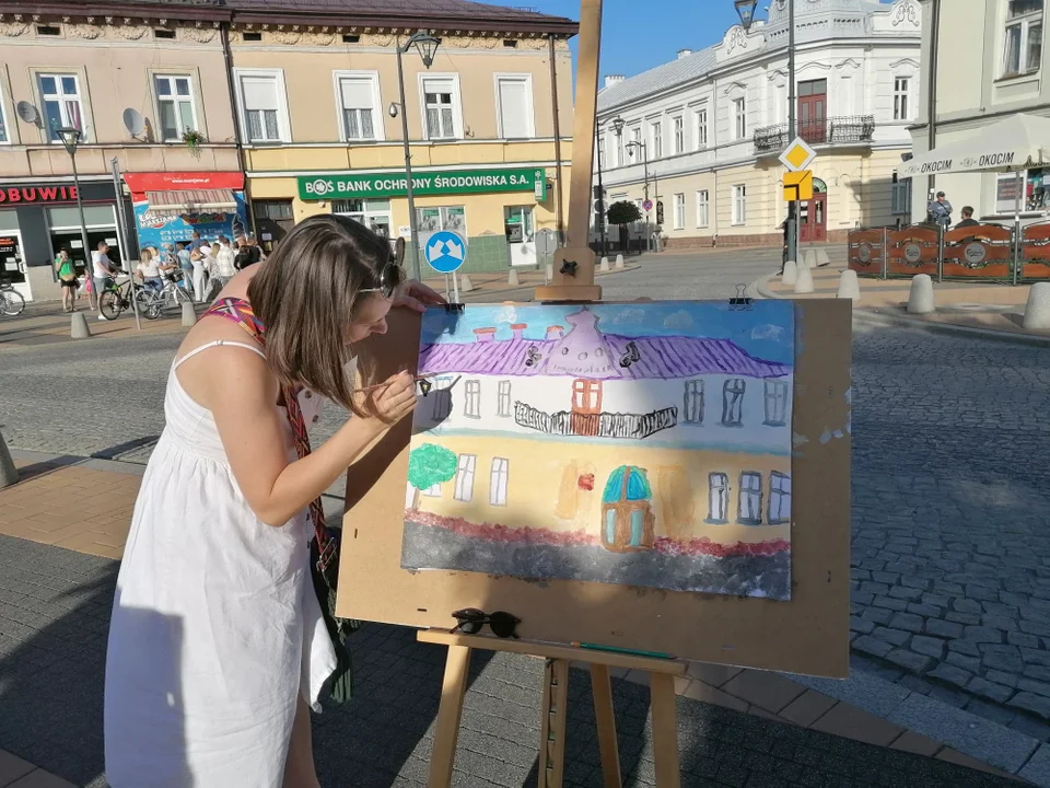 Młodzi artyści malowali różne obrazy. Można było zobaczyć architekturę rynku, naturę, drzewa, kwiaty itp. O godz. 19 na scenie pojawiła się grupa „Senior Show” działająca przy Uniwersytecie Trzeciego Wieku. Artystów do występu przygotowała Magdalena Betleja.