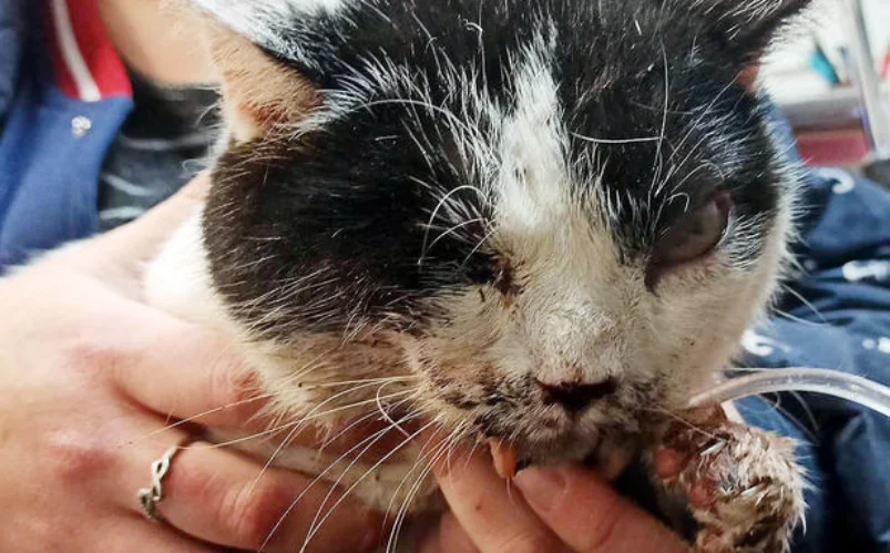 Płakać nam się chce na samą myśl, co ten kot przeżył 😭 Cierpnie nam skóra, gdy pomyślimy, że zamarzał ranny i cierpiący przy drodze przez 2 dni w mrozie i śniegu i nikt mu nie pomógł 😭 Krew z ran zamarzała w sople...