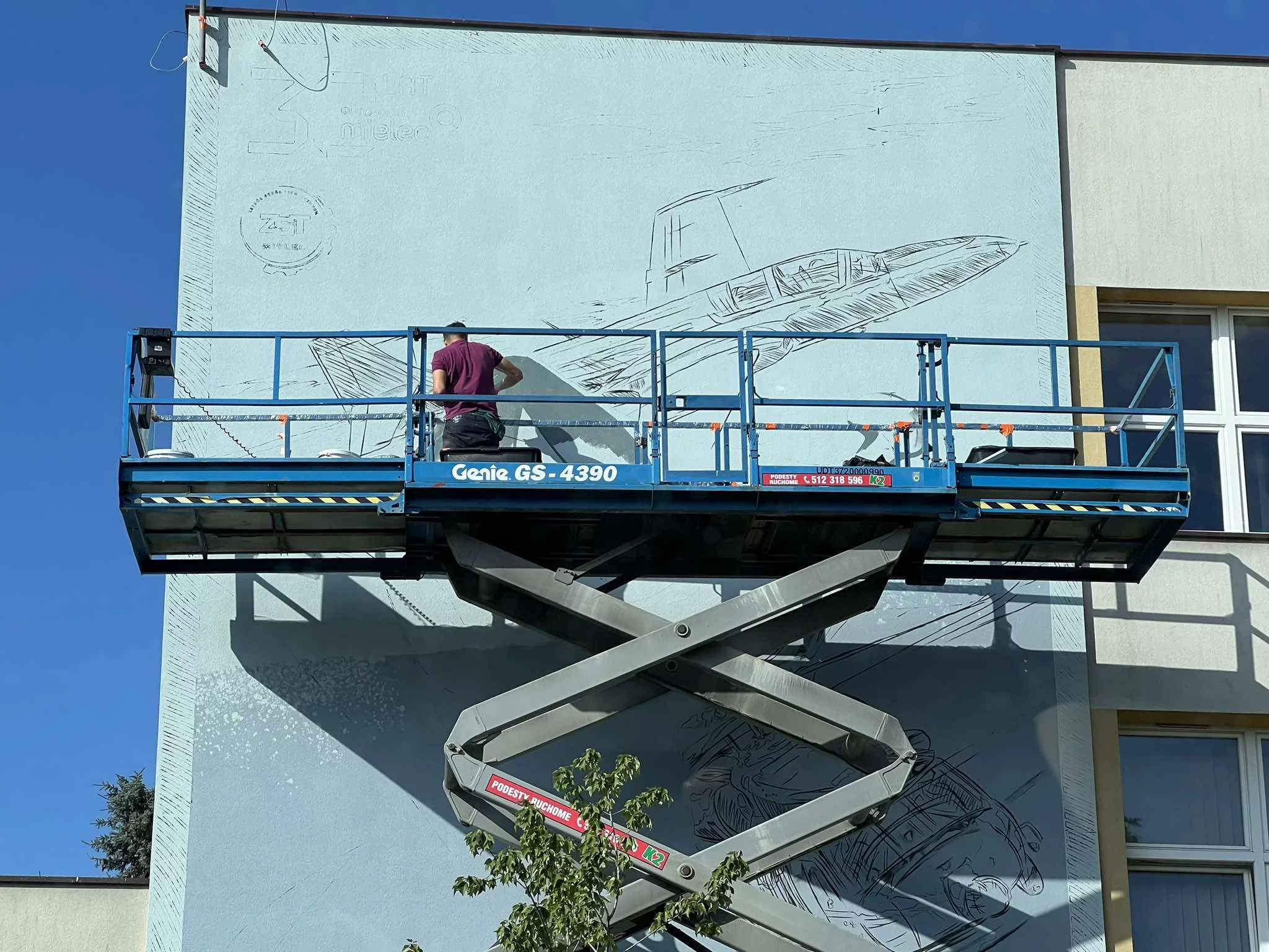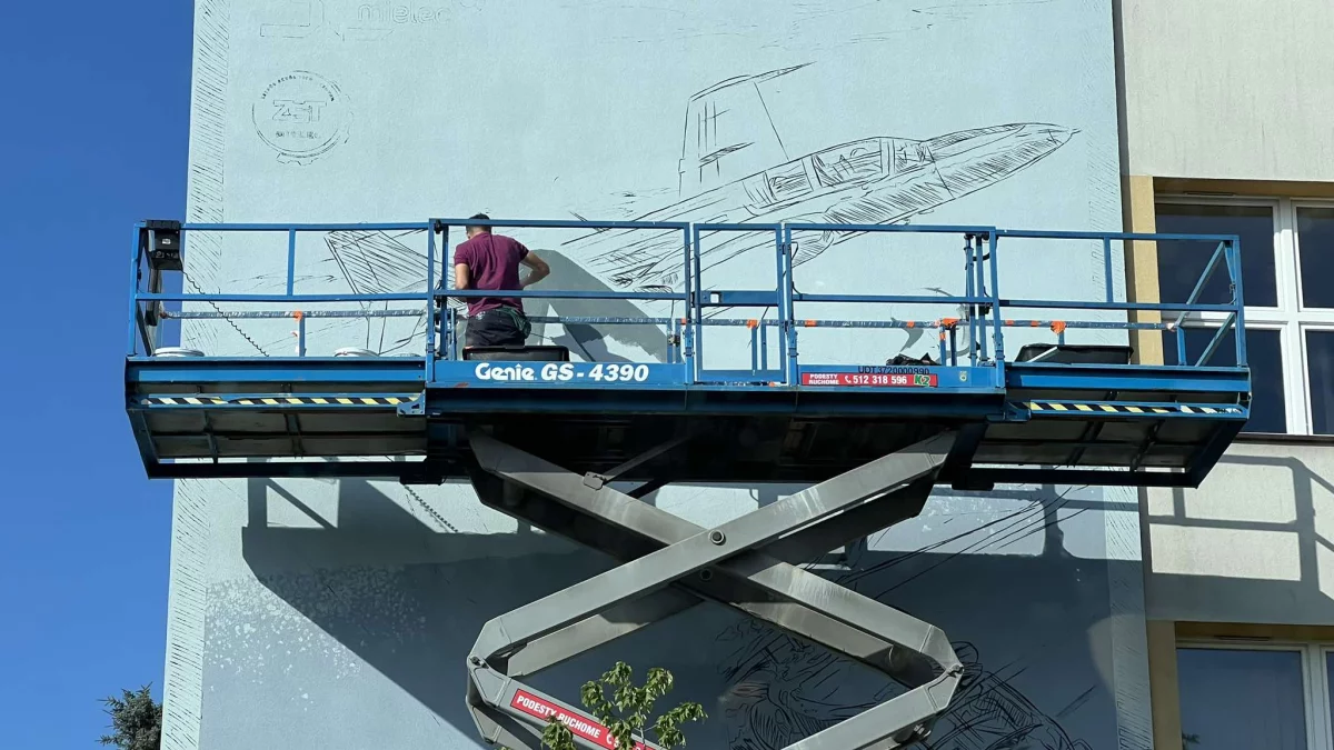 Autor: Julia Bogdan | Opis: Na ZST powstaje mural z najważniejszymi elementami mieleckiego lotnictwa