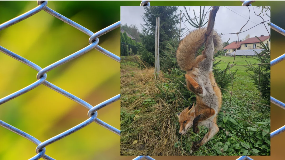 Po przyjeździe okazało się, że lis zaplątał się w metalowe oczka ogrodzenia i nie był w stanie się uwolnić. Każda próba wydostania się tylko pogarszała sytuację – zwierzę było wyraźnie wyczerpane i zdezorientowane.